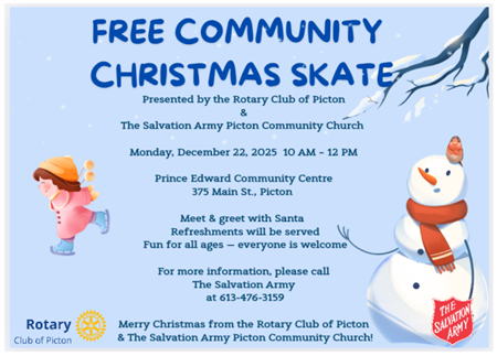 Rotary Club of Picton wishes to extend warm wishes this holiday season. May this time be filled with joy, kindness, and the spirit of giving.